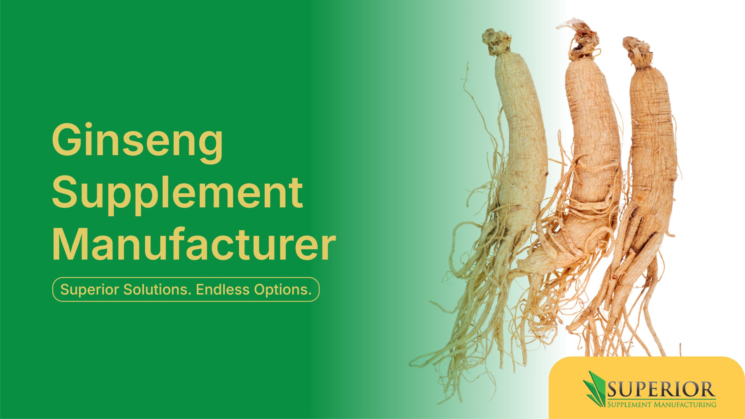 Transform your energy wellness vision into successful Ginseng products. Contact Superior Supplement Manufacturing to begin your Ginseng supplement manufacturing journey today.